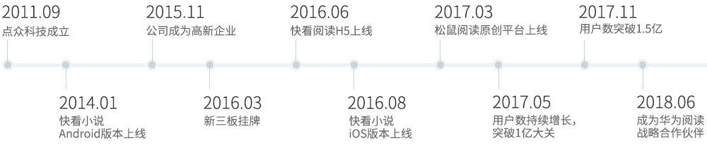 北京点众科技股份有限公司创立于2011年,是专注于移动端正版数字阅读内容的生产和分发的国家高新技术企业。成立以来,公司以诚信、务实、创新、共赢为宗旨,以传递更好的数字内容为使命,依托精细化运营基因、强大的渠道拓展能力、严密的版权保护措施、勇于开拓的人才队伍,通过科技与文化的有机融合,打造一流的数字阅读平台,推动文化事业不断创新发展。