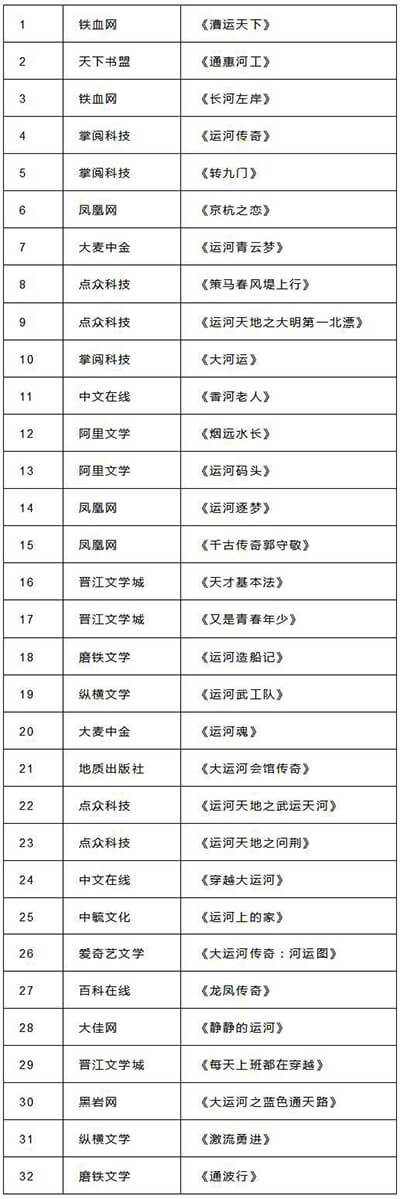 近日,北京市新闻出版广电局组织专家召开了以“大运河文化”为主题的网络文学选题论证工作会,遴选出17家单位选送的《漕运天下》等32部作品选题,确定为重点孵化项目。(编注:点众科技共有四本书入选重点孵化项目,分别是《策马春风堤上行》、《运河天地之大明第一北漂》、《运河天地之武运天河》、《运河天地之问荆》)