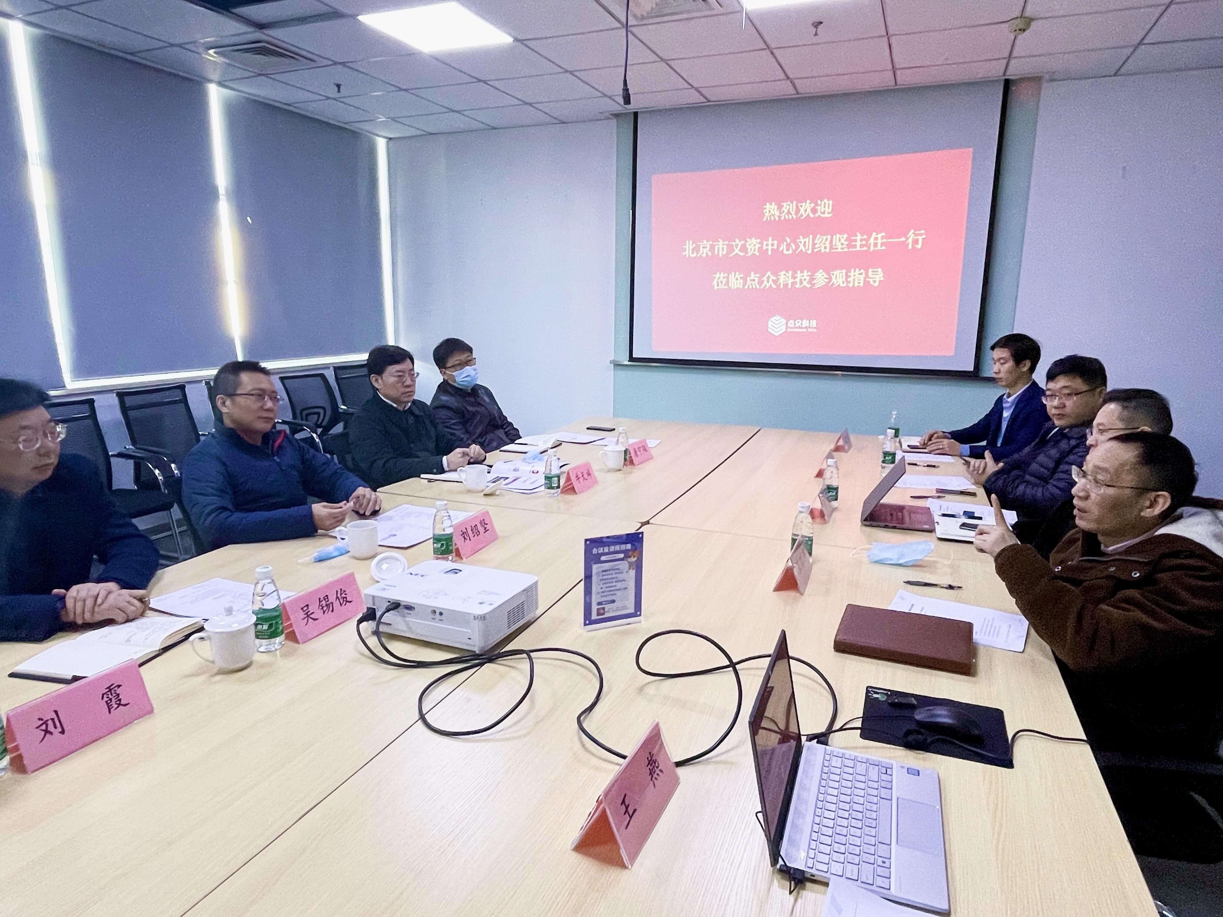 2020年11月30日上午,北京市文资中心党委书记、主任刘绍坚一行莅临点众科技考察,一同考察的还有文资中心综合处处长吴锡俊、投融资处处长牛天祥、综合处副处长刘霞、政策法规处副处长唐宁翔等相关人员。点众科技董事长陈瑞卿等人接待来访。